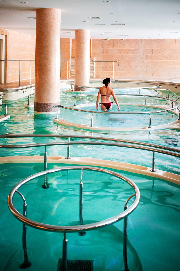 Le Spa Thermal de Barbotan-les-Thermes se déploie sur un espace dépaysant de 400 m² aux décors de pierres blondes et d’émaux.