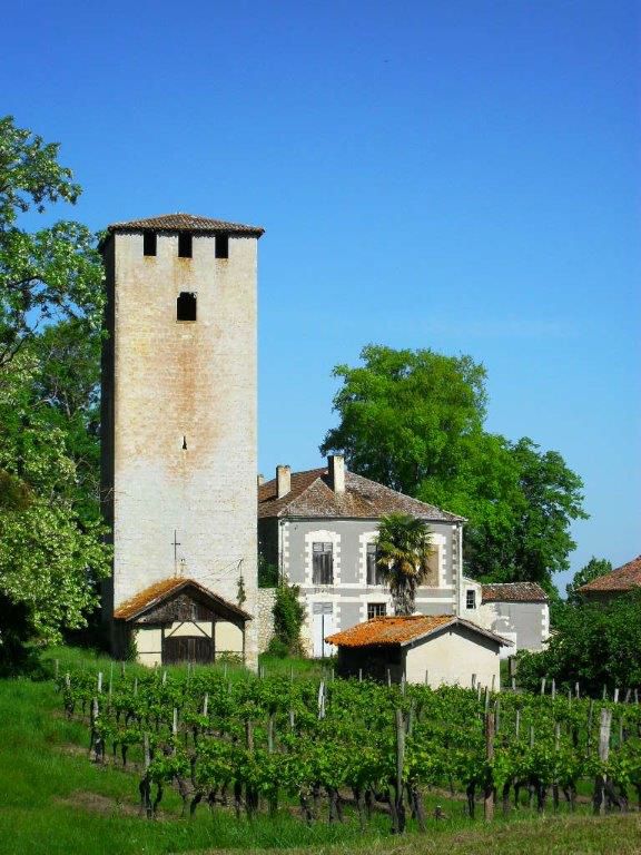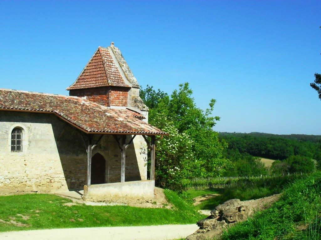 Dédiée à Notre Dame des vignerons, cette église romane est l’une des plus anciennes de sa juridiction. Située sur le chemin de Saint-Jacques de Compostelle, elle accueille de nombreux pèlerins. Du château, il ne reste qu’une tour de guet datant de la fin du 13e siècle, intégrée à la ligne de fortification des Armagnacs face aux Anglais. Un pigeonnier a disparu à proximité, laissant neuf étranges piliers en plein champ. Non loin d’ici cheminait une voie d’origine préhistorique, chemin naturel sur les crêtes nommé la Ténarèze. Véritable ligne de partage des eaux de la Garonne et de l’Adour, il permettait de joindre Bordeaux et l’océan, aux Pyrénées.