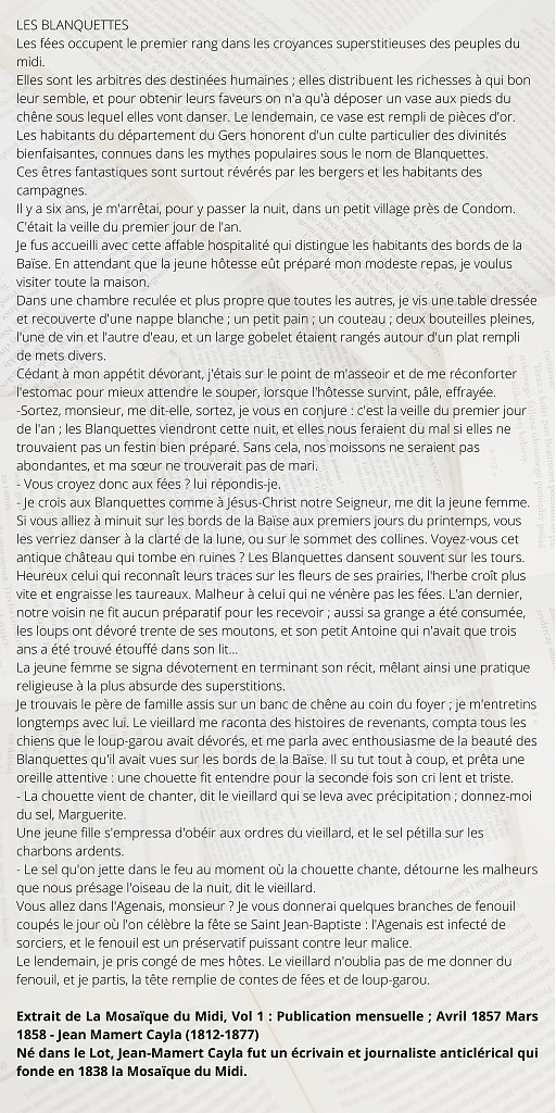 Le chemin des fées reprend les légendes locales des hadas, ou fées de Gascogne, et blanquettes, les fées de la Baïse. Le parcours en lacets relie le haut de la bastide au port, sur quelques centaines de mètres, où le visiteur déambule entre maisons et portes de fées créées par les habitants et enfants du village, arbres et espèces botaniques, ainsi que de nombreuses orchidées sauvages au printemps. Les créations y sont éphémères et régulièrement remplacées au gré des saisons. Situé sur les remparts méridionaux de la bastide de Valence-sur-Baïse, à deux pas du port, le sentier botanique vous invite à découvrir les légendes des fées ; las hadas, en gascon !Le chemin des fées est un ancien sentier botanique réaménagé par les habitants depuis 2022 avec une soixantaine de maisons de fées, de petites portes, et qui se complète ou se renouvèle au fil des saisons. Il est en lien avec les nombreuses légendes de fées, las hadas en gascon, qui entourent le village de leur aura.L'exposition au sud du chemin des remparts, dans son cadre de jardins en terrasses, lui confère un caractère méditerranéen où se côtoient Opuntias, Figuiers, Lauriers-Sauce et Lauriers-tin ainsi que des Chamacrops souvent échappés des jardins clos qui les surplombent. Ce sentier en pente relie la Place des Pyrénées au port de Valence. Des bancs ponctuant votre balade vous invitent à faire des pauses et à observer les différentes plantes, arbres et arbustes. Autrefois cultivé, cet espace avait repris, au cours des ans, son aspect originel de pelouse calcaire.Aménagé avec le concours de l'ONF, le lieu a voulu parfaire son rôle éducatif, en y ajoutant quelques essences ornementales. Au gré de votre promenade, vous découvrirez le Gingko Biloba (arbre aux 40 écus), le Cormier, utilisé en ébénisterie, lutherie et le Frêne commun.Le sentier est jalonné de panneaux explicatif sur la flore.