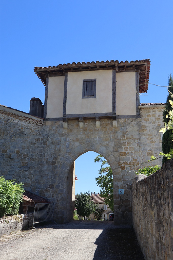 Pour pénétrer dans l’enceinte fortifiée du village, passage obligé par la porte-tour qui atteste de la présence de remparts construits à la fin du XIIIème siècle avec deux portes-tours dont seule la porte nord subsiste.