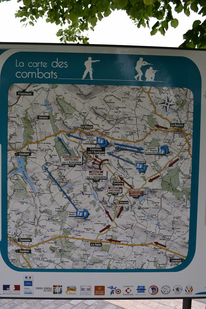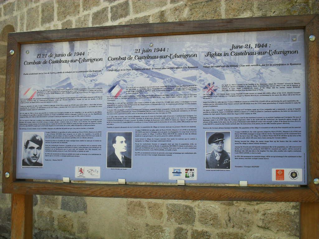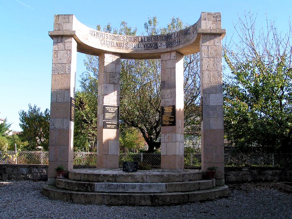 Lieu de mémoire : Fief de la résistance, ce village a abrité un important réseau de résistants dès 1942. Le 21 juin 1944, le petit village de Castelnau fut le théâtre d'un violent combat entre les résistants et les troupes allemandes qui encerclent le village, la tour carrée est bourrée d'armes, d'explosif et munition auxquels le feu est mis soufflant ainsi le village. La complicité de la totalité de la population avec les combattants de la liberté valait au village d'être cité et décoré de la Croix de guerre avec étoile de vermeil. L'originalité de l'expérience de Castelnau-sur-l'Auvignon repose sur la participation au combat de résistants de diverses nationalités. En effet Français, Espagnols, Britanniques, Italiens se réunirent le 21 juin pour lutter ensemble contre le fascisme. Le village fut entièrement détruit. Un monument en forme de péristyle a été élevé à l'ouest du village en hommage aux combattants morts pour la liberté.