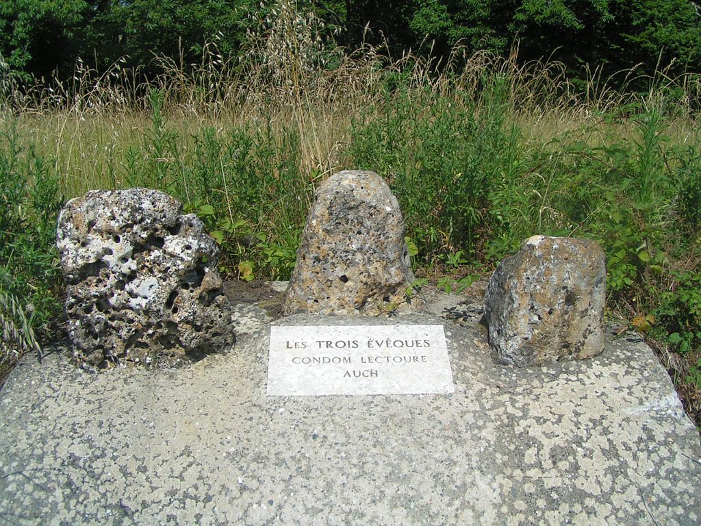 Un lieu-dit nommé «Aux Trois Évêques» aurait été l’endroit où se seraient rencontrés, vers 1450, les évêques de Condom, Lectoure et Auch. Ils auraient dîné ensemble, chacun sur ses terres, à la même table. En souvenir de cette rencontre, ils décidèrent de planter trois pierres sur ce lieu.