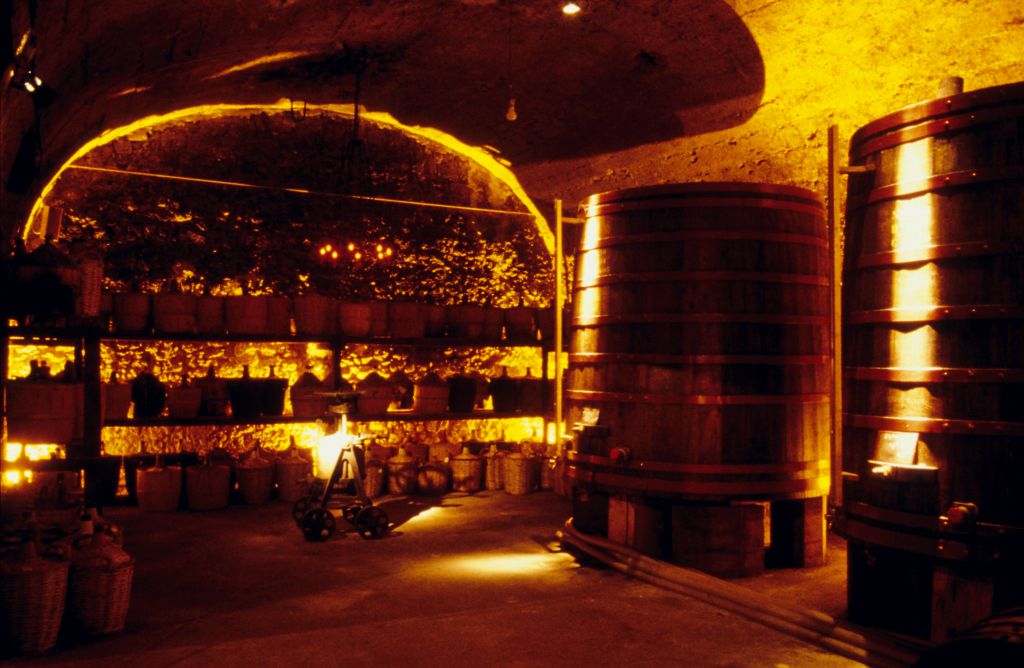 Du jardin, situé derrière le corps principal, on peut accéder aux chais centenaires.