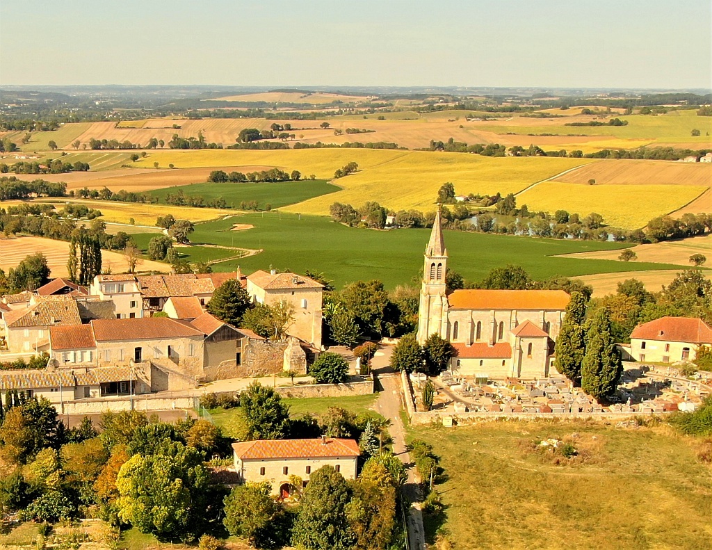 Le village surplombe la vallée du Gers et offre un merveilleux panorama sur la chaîne des Pyrénées. Au pied de l’église, dans le cimetière, un mausolée abrite la sépulture du comte de Lagrange, Maréchal d’Empire.