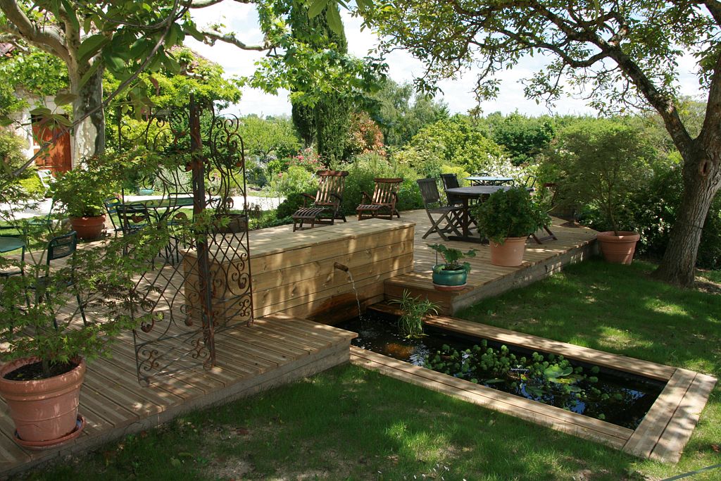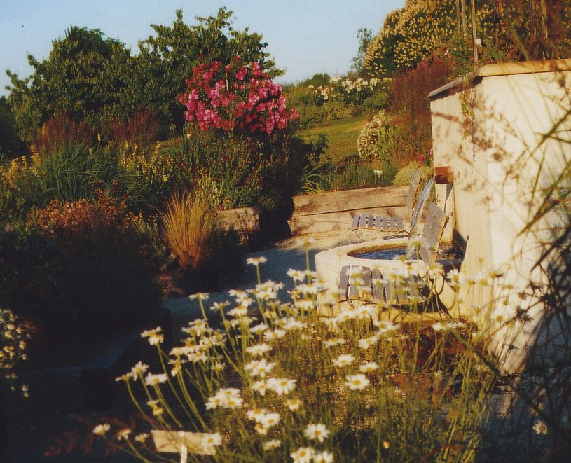 - le jardin à l'anglaise entourant la maison familiale en vieilles pierres et son pigeonnier.