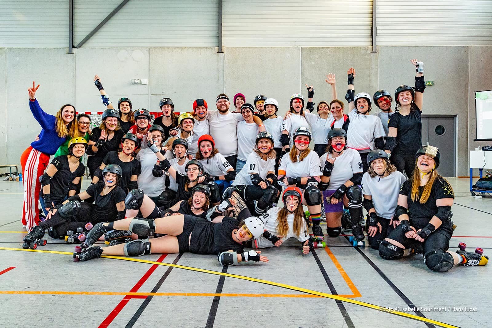 Marine : Ruralité et progressisme ça fait antagoniste de prime abord, mais ce sont deux parents parfois fâchés mais pas incompatibles ! Loin de là, suffit de regarder le succès que notre association/club connaitra dès sa création. Rien n’était clairement défini mais c’est peu de le dire, quelque chose sommeillait. On commence par se réunir quelques-unes, dans une mixité choisie, à la libraire de la Méridienne. Parmi les primo-réunies, Mathilde, jouait au Roller-Derby auparavant… Une autre candidate désirait y jouer sans connaître. Et ce sport se définit aussi au travers de valeurs, inclusives, féministes, bienveillantes il n’en fallait pas moins pour « enchausser » le pas.