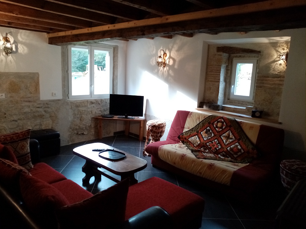 Cette magnifique bâtisse invite au calme et à la quiétude avec tout le confort voulu pour passer de bons moments en famille ou entre amis ; elle a été rénovée entre 2012 et 2018 ; la décoration épurée y est soignée alliant matériaux anciens et mobilier contemporain.