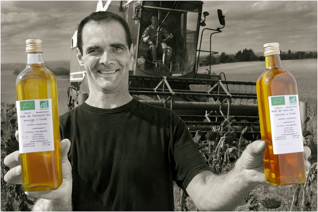 Tout est cultivé trié transformé et conditionné à la ferme. Lentilles, pois chiches, pois carrés, haricots azukis flageolets ou gourmets, farines, pâtes, huiles de tournesol, colza et cameline, vous sont proposés en libre service à la ferme et aux marchés de Fleurance les mardis et samedis.