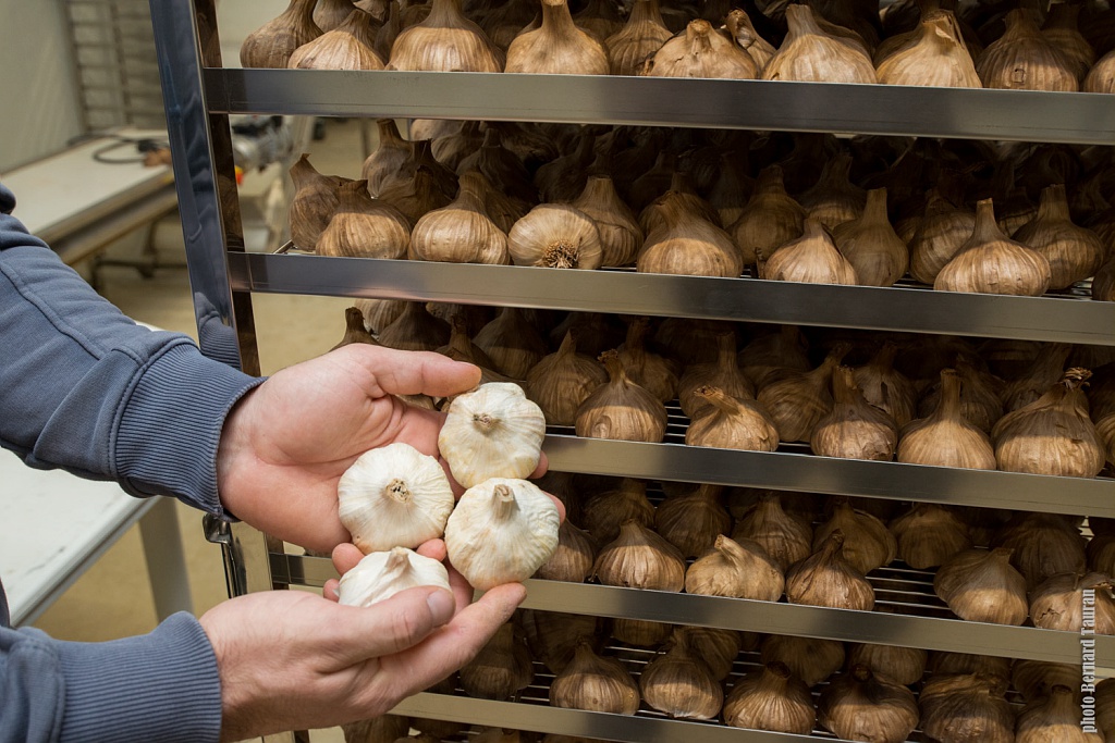 Pendant plus d’un an, Jérémy s'attèle à l’élaboration de la recette à travers un procédé de fermentation naturel. L’ail passe 3 semaines dans un four, avant de commencer une période de maturation à l’air libre. A l’issue du processus, l’ail est fondant, très doux en bouche !