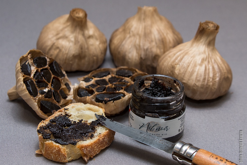 L’ail noir se consomme avec du sucré comme du salé : sur des toasts à l’apéritif avec un filet d’huile d’olive, avec du foie gras, avec du fromage ou encore de la volaille ou du poisson ! En dessert, il sublime les crèmes brûlées, les truffes au chocolat...