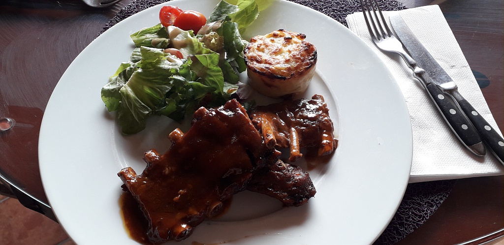 "De par mes origines malgaches, je m'épanouis dans une cuisine un peu épicée. Mes clients retrouvent ces saveurs dans les plats en sauce du terroir que j'affectionne particulièrement et que je propose souvent en menu du jour. Ma carte est volontairement restreinte car je travaille en majorité en circuit court avec des produits locaux, pour ma viande et mes légumes ".