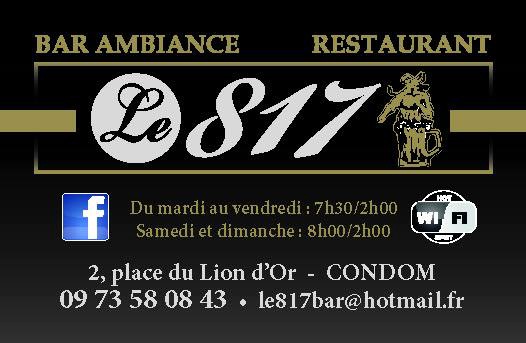 Au coeur de la ville de Condom, sur une place conviviale, le bar 817 vous accueille pour vous servir, en journée, un rafraîchissement ou bien une soirée animée.