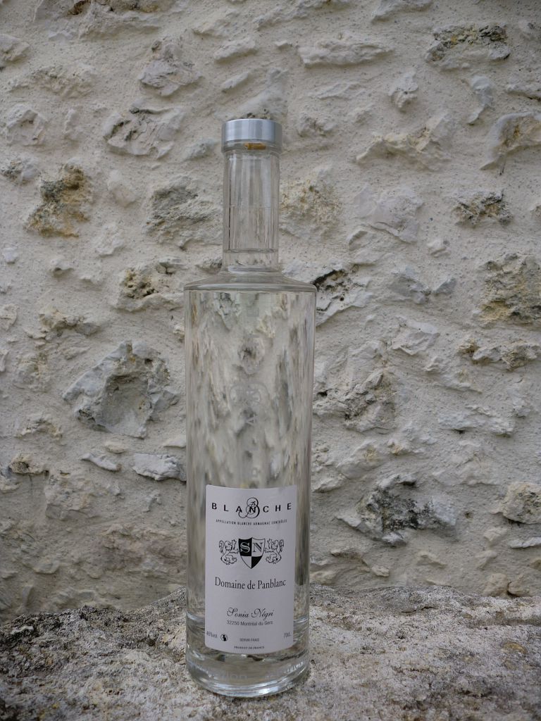 Nous vous proposons également la Blanche, eau de vie aux arômes fruités et floraux. Elle est à découvrir très fraîche, voire glacée. A déguster en cocktail ou en cuisine : crêpes flambées, tourtières gasconnes, far aux pruneaux.