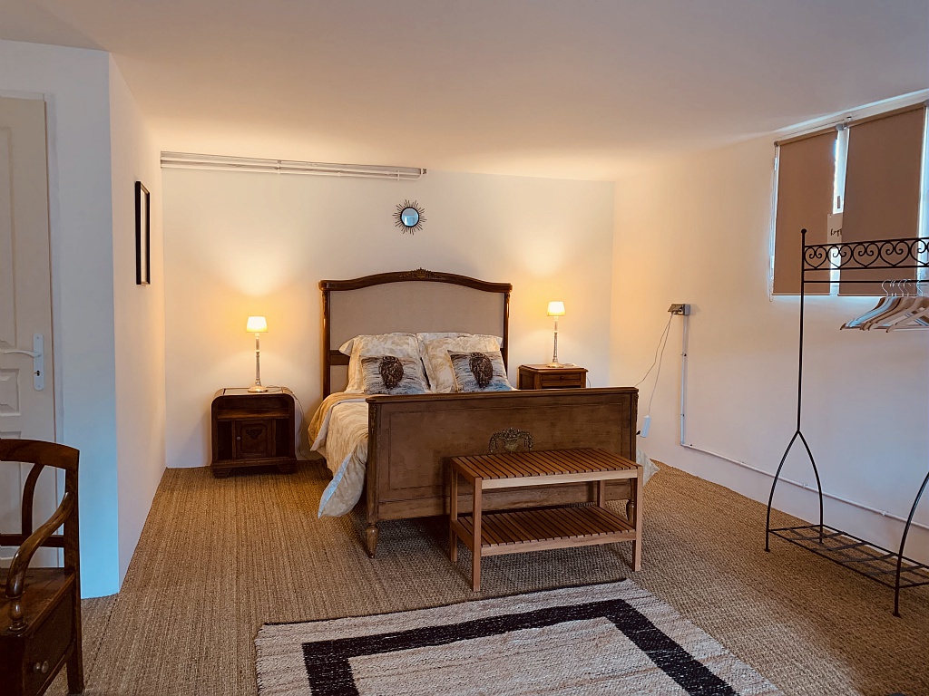chambre d'hôtes de 40 mètres carrés, équipée d'une télévision, de la fibre et d'un coin café-thé. Vue sur le jardin. Possibilité de se garer devant la maison.