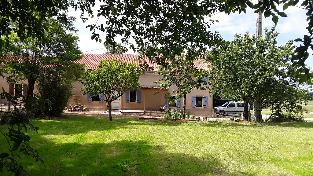 Vous apprécierez le jardin privatif plein sud de 1000m² avec terrasse (barbecue, mobiliers de jardin, jeux extérieur) entouré de champs et de vignes.