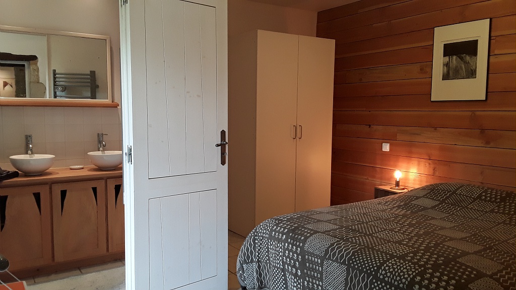 Le Gîte se compose de 3 chambres : 1 chambre parentale avec lit double au rez-de-chaussée et 2 chambres d'enfants avec lit simple à l'étage.