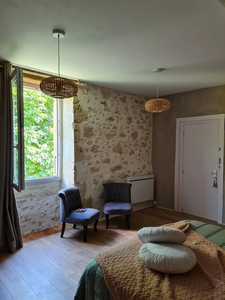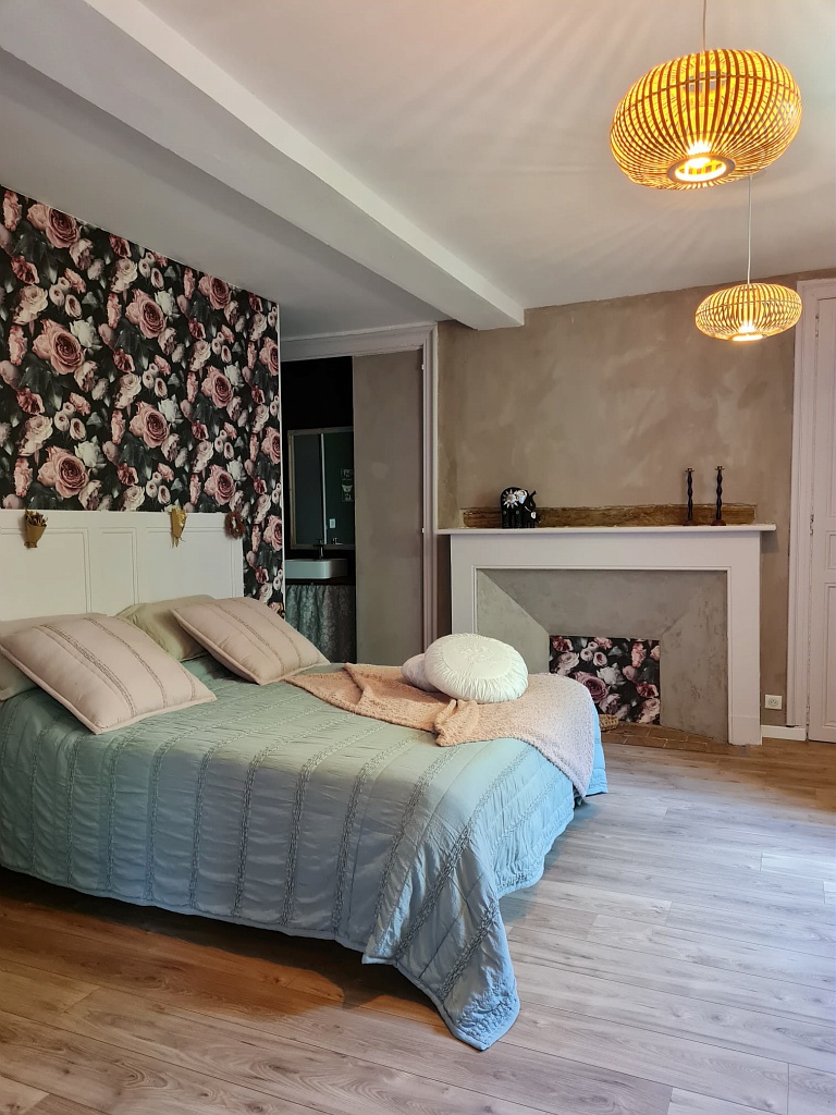 Une seconde chambre de 3 personnes composée d'un lit double et d'un lit simple.
