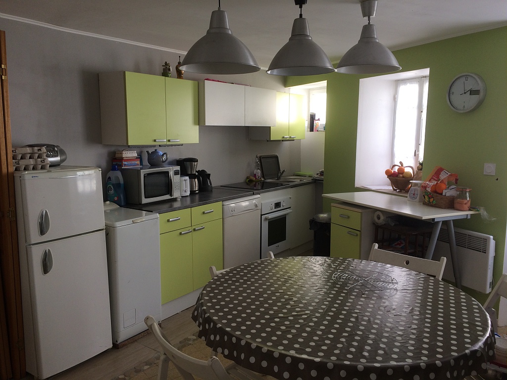 - une cuisine équipée : four, plaques vitrocéramiques, micro-ondes, lave linge, frigo, bouilloire, cafetière et petits électroménagers
