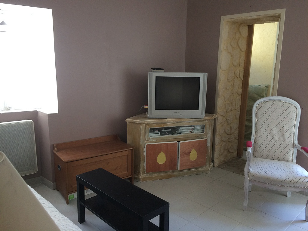 - un salon comprenant télévision, console, jeux de société une armoire et un clic clac