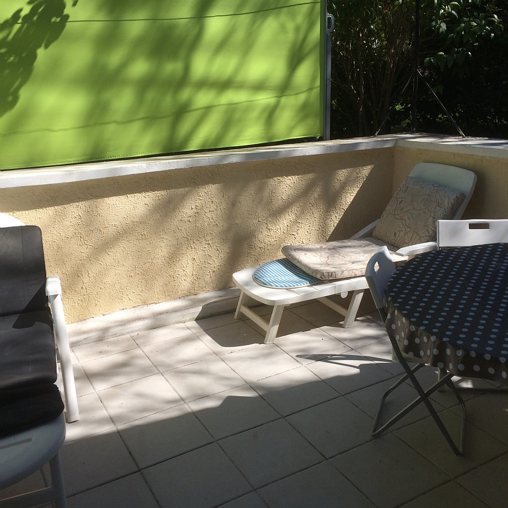 - une terrasse de 12 m² permettant de manger dehors (2 chaises longues et petit barbecue à disposition).