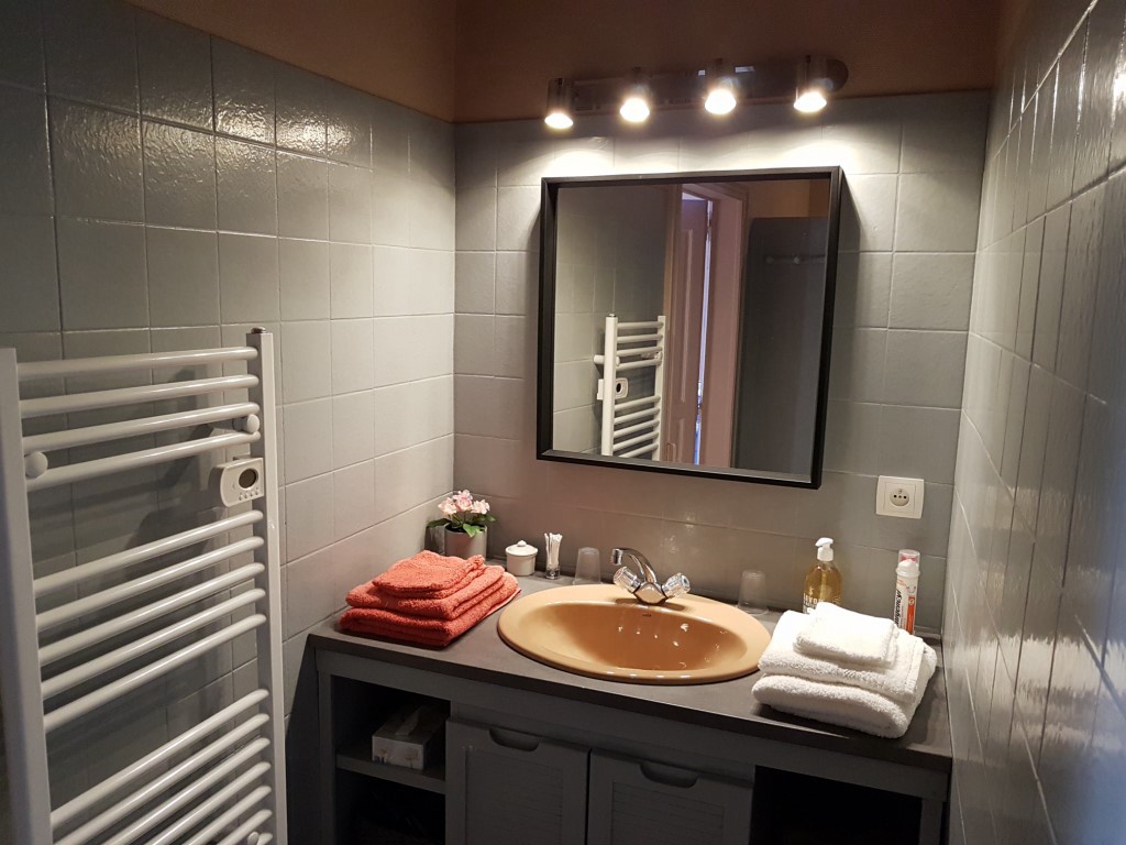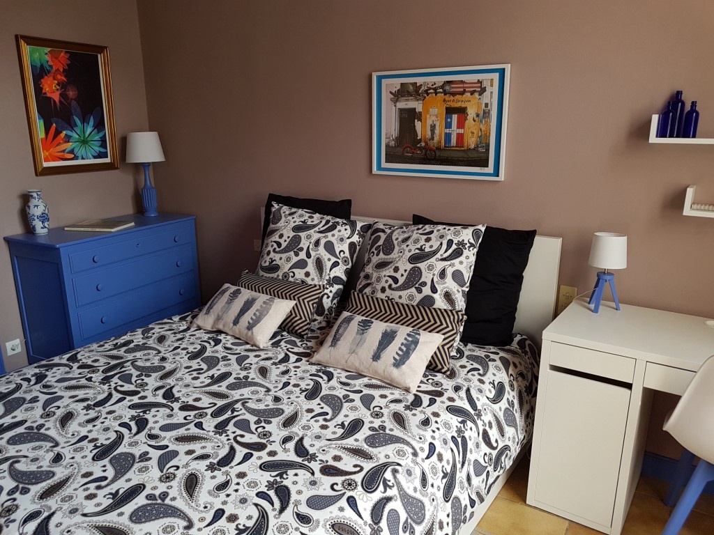 Donnant sur le patio, l'entrée privative avec table de bistro et chaises conduit à votre chambre qui communique directement avec votre salle d'eau (douche, toilettes, lavabo). Chambre avec lit king size (160x200), coin bureau, wifi haut-débit.