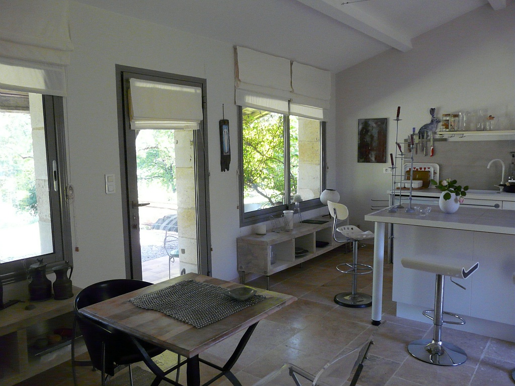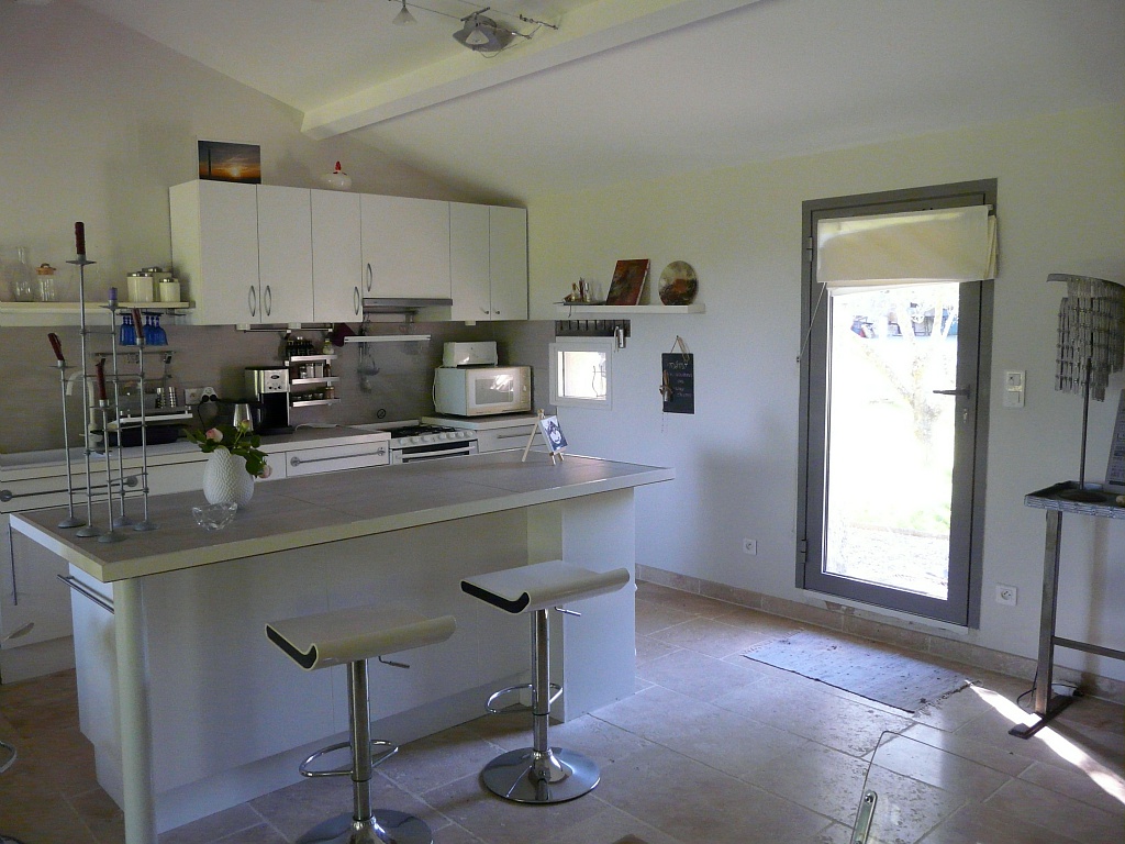 Cuisine américaine intégrée discrètement dans la salle de séjour entièrement équipée pour pouvoir cuisiner agréablement ;